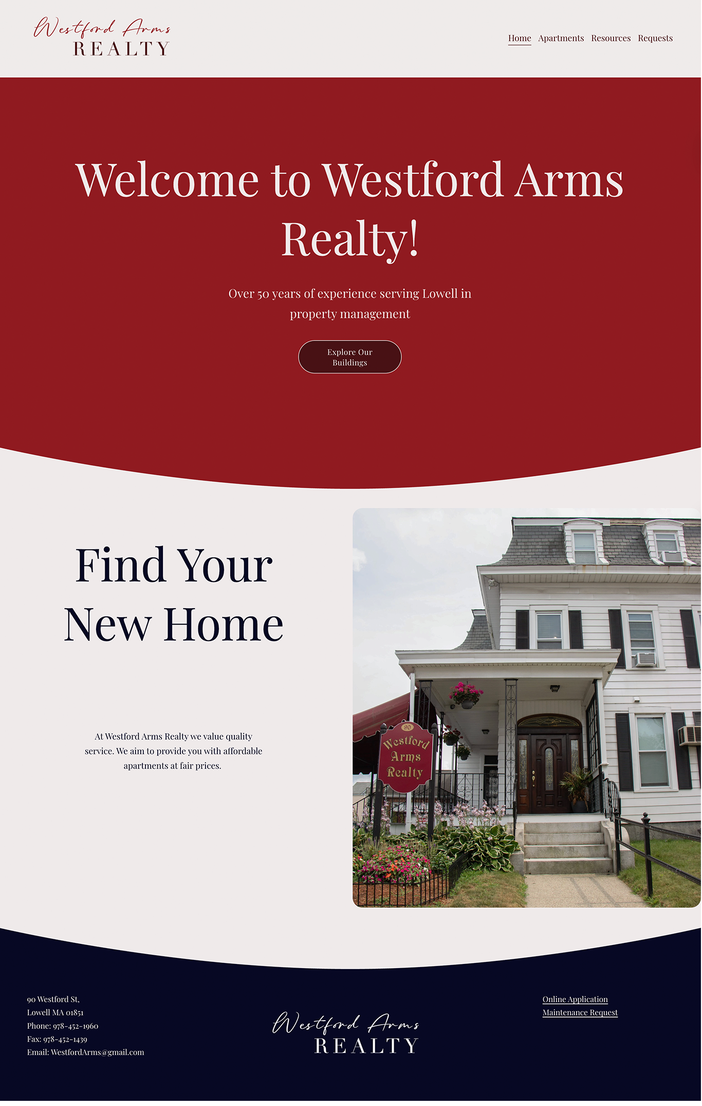 Westford Arms Realty is a family-owned property management company based in Lowell, MA. When we first connected, they did not yet have a website and were seeking a complete brand presence, starting with a custom site. The goal was to create a digital experience that felt authentic to their roots while positioning them as the trusted, professional experts they are in real estate management.